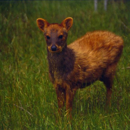 Description: The smallest deer in the world, weighing only 8 kg. It measures up to 35 cm over the shoulder and reaches a total body length of 60 cm, without tail. The antlers are small and pointed.