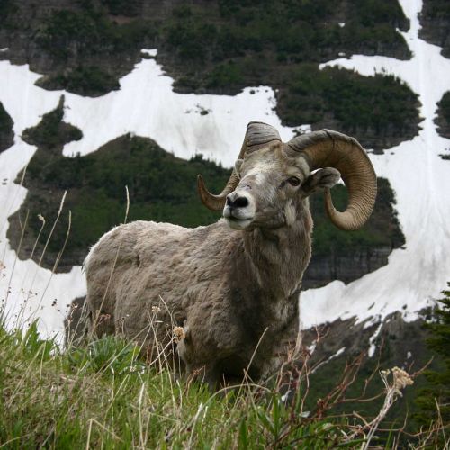 Description: Compared to the Argali, the Snow Sheep is medium sized, with a compact body, weighing a maximum of 140 kg, with a shoulder height of 1 meter and a total body length of 1,80 m without tail (12 cm). The colour is variable, depending on subspecies, but is mostly of a brown or cinnamon brown hue. On the face the colour may be lighter. The neck and breast does not have elongated and mane-like hairs. The horns are of medium length, very heavy and massive, with a very thick base.