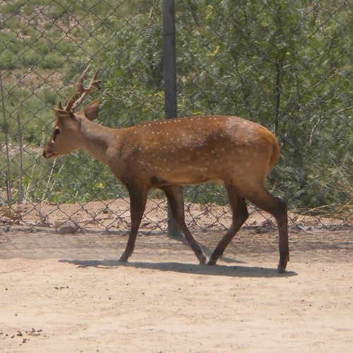 Description: Middle sized deer weighing around 40-50 kg and measuring up to 80 cm over the shoulder. General colour dark brown. The antlers have between 2 and 6 points.