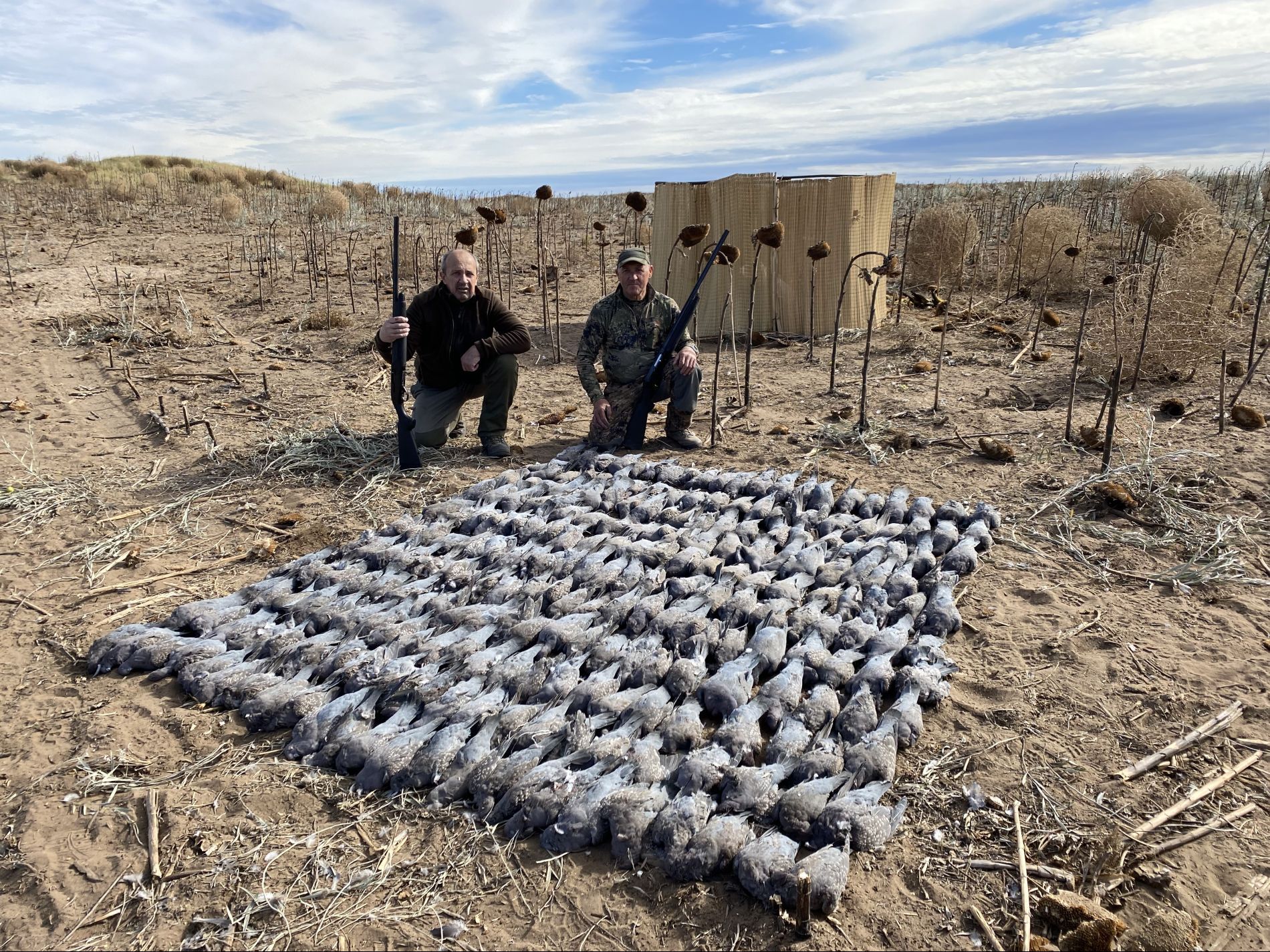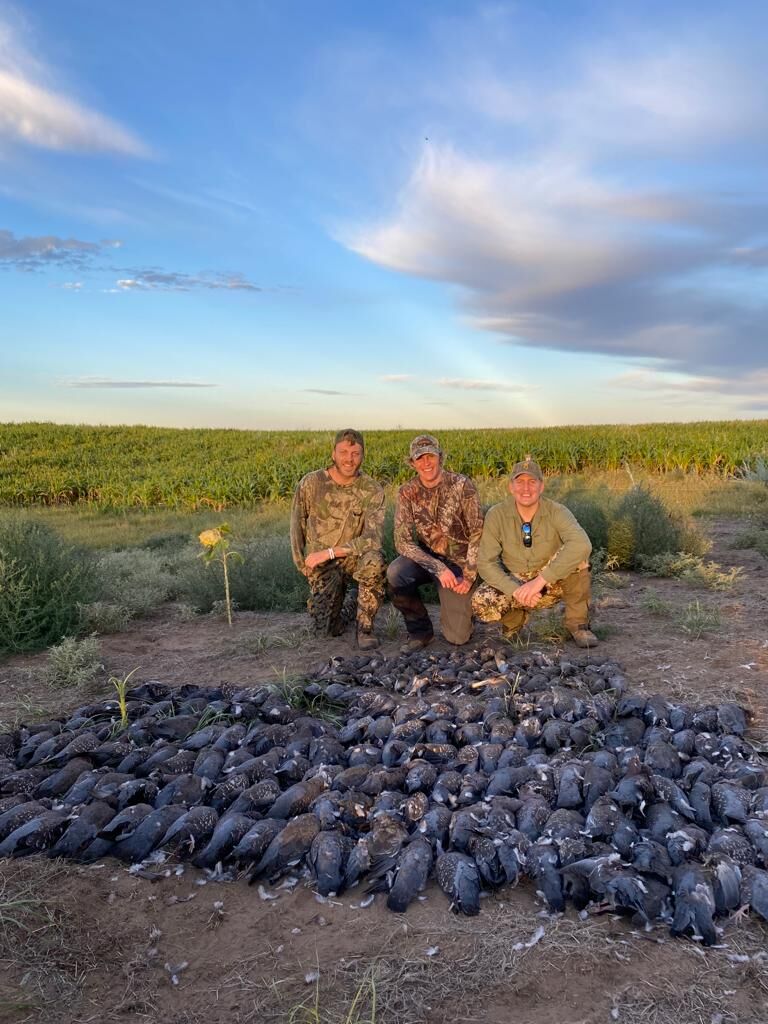 Doves are typically shot on flight lines in wooded areas where they roost, or from blinds near sunflower fields as they come in to feed. Expect between 50–100 doves per day – depending on season, weather conditions, and shooting skills. An action-packed and entertaining form of hunting that makes the perfect complement to rifle hunting.