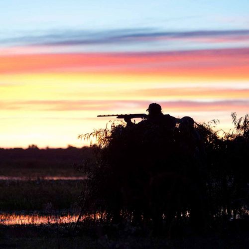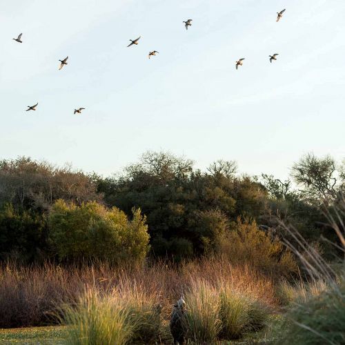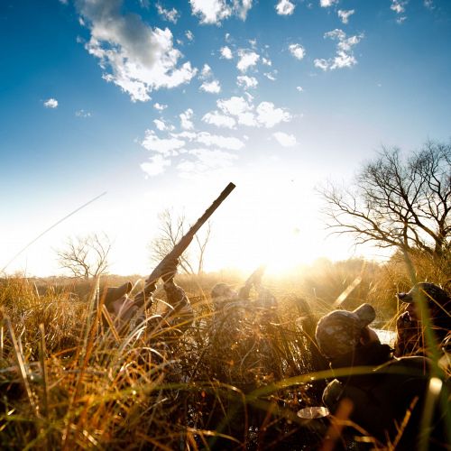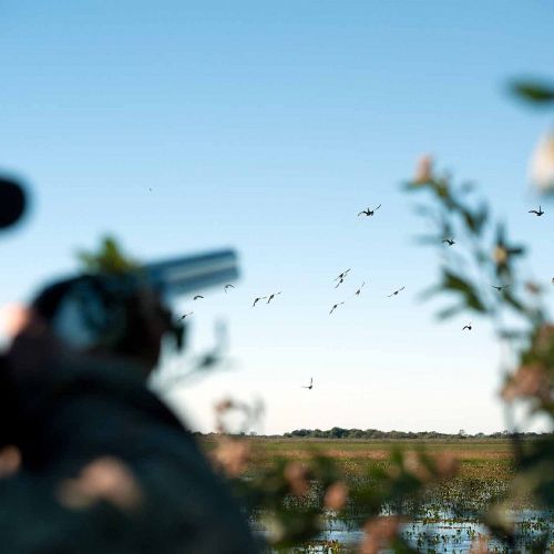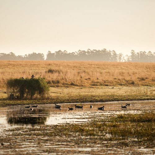 There is something magical about Argentine duck hunting and their many brightly colored duck species. Typically, the hunt takes place in the morning, where you leave the accommodation early in the morning and head out to the hunting area, where upon arrival your guide quickly constructs a hide and lays out decoys. At dawn, you can begin to hear the ducks' wings beating in the air. Just seeing the sunrise and ducks flying over the decoys is worth the trip! In Argentina, there are quotas on ducks and it is permitted to shoot 20 ducks per hunter/day.