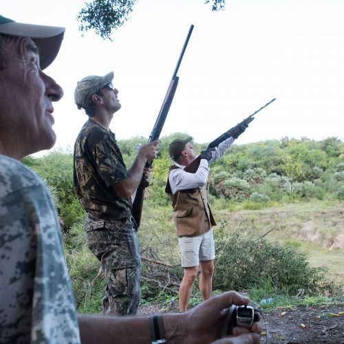A typical hunting day starts with a good breakfast in the lodge, after which you will drive to the hunting district. The hunting guides will already have been orientated on where the pigeons are flying, so they can make sure they place their hunters in the optimal areas. When you arrive in the hunting district each hunter will be assigned an experienced “bird boy” who will show the individual hunters to their place and make sure that the hunter is supplied with cartridges, refreshments etc. during the shoot.