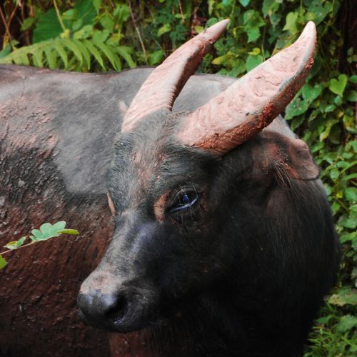 Description: Relatively small wild cattle weighing up to 300 kg and reaching a total body length of 1,80 m without tail (30 cm).