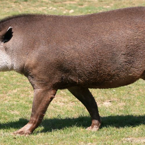 Description: Characteristic tapir, reminiscent of Baird's Tapir measuring up to 1 meter over the shoulder, reaching a total body length of around 2 meters. General colour rufous brown to greyish rufous brown, with a short mane.