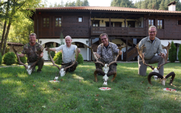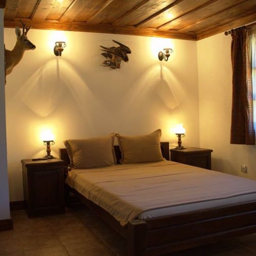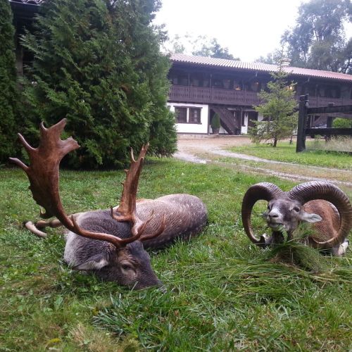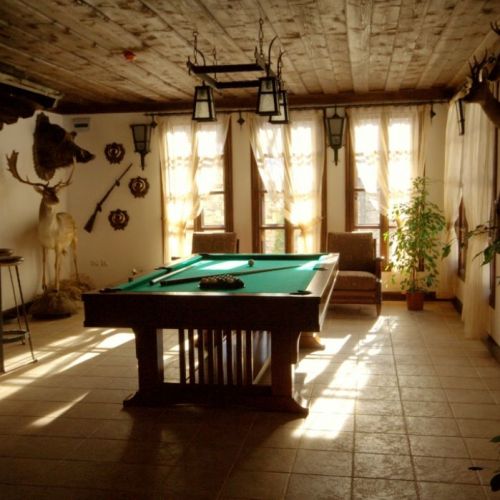 Our hunters stay in a 5-star hunting lodge. There are 12 comfortable double rooms, all with private bath and toilet, satellite-t.v., and some with a fireplace. Additionally there is a large, cosy dining room with a fireplace, billiards, bar, and lounge decorated with hunting trophies.