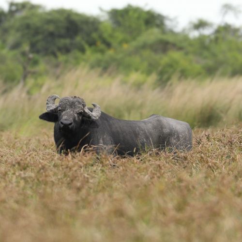 Description: Large, often domesticated wild cattle weighing around 900 kg. It measures up to 1,80 m over the shoulder and reaches a total body length of 3 m, witho